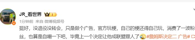 3.官方玩梗,勒布朗自己的梗也玩,消费粉丝也算自嘲一下,毕竟决定一让他成为联盟罪人。